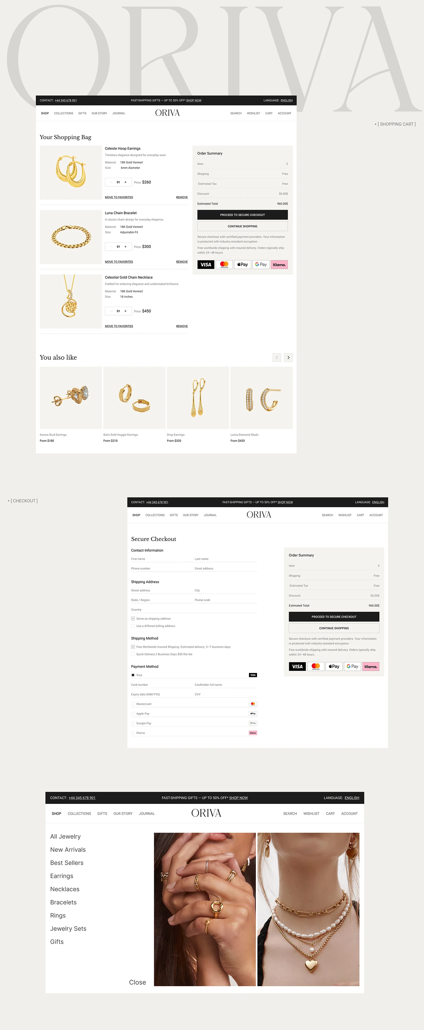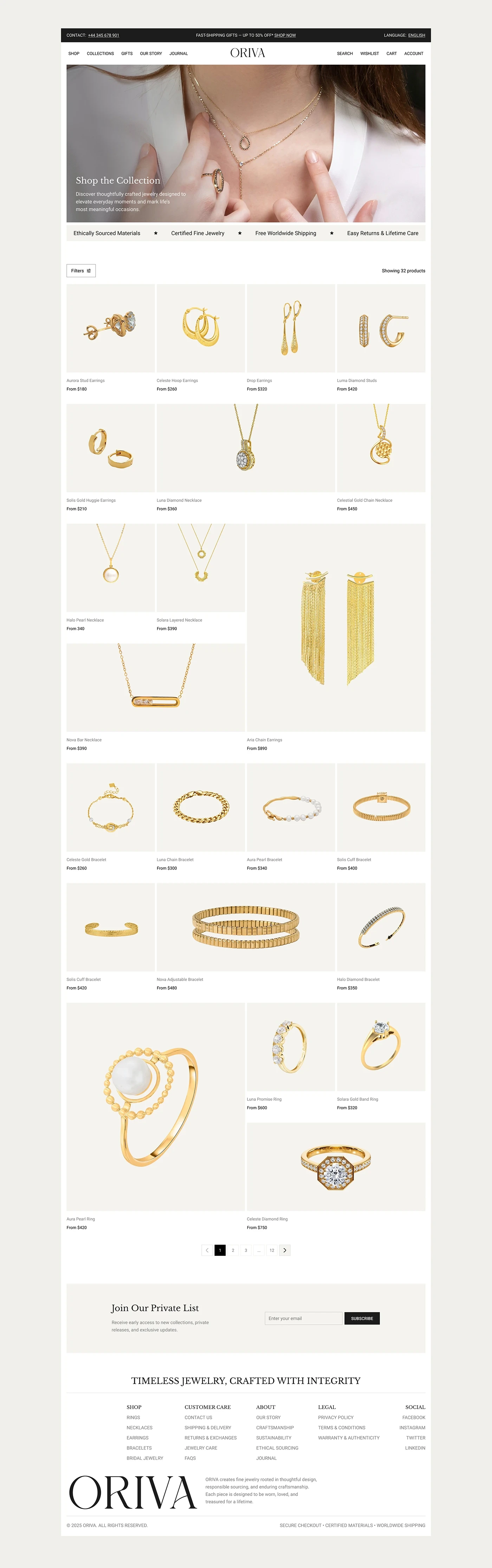 Luxury shoppers expect a seamless, considered experience from the first click. We mapped out the entire customer journey — from discovery through product browsing to checkout — ensuring every interaction reinforced Oriva's positioning as a premium jewelry house.